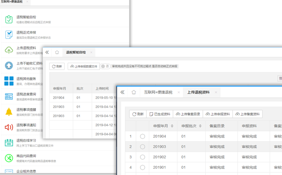 通过在出口退税正式申报前,将当期退税申报数据与岀口货物备案单证智能化对应关联,自动生成《出口货物单证备案目录表》,自动生成岀口企业自查表, 自动生成结汇情况表,为出口企业建立了规范化的风险内控机制。